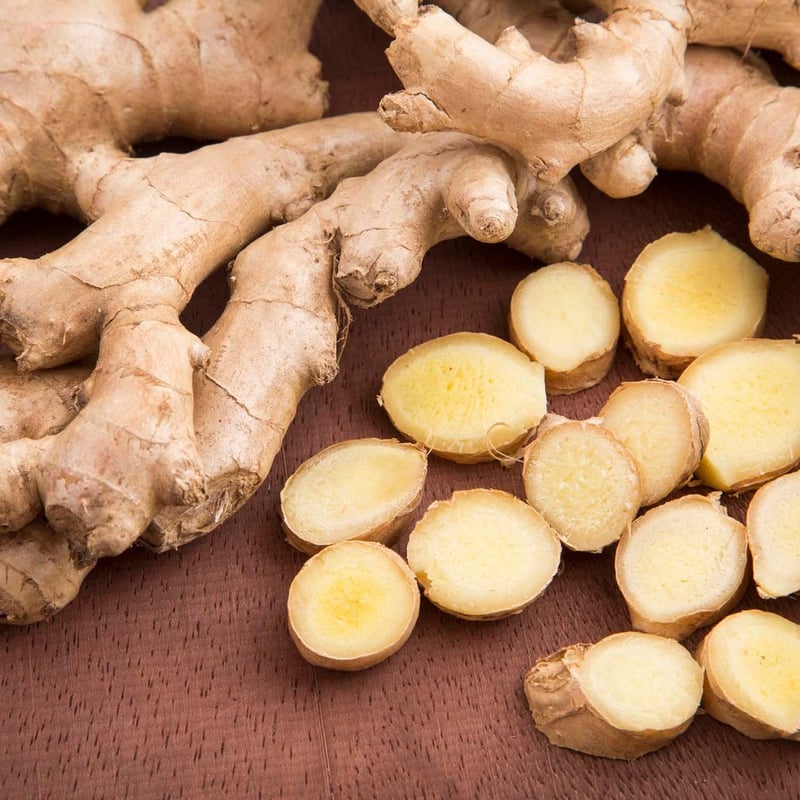 Dried ginger slices for culinary and medicinal use. Valued for anti-inflammatory and warming effects.