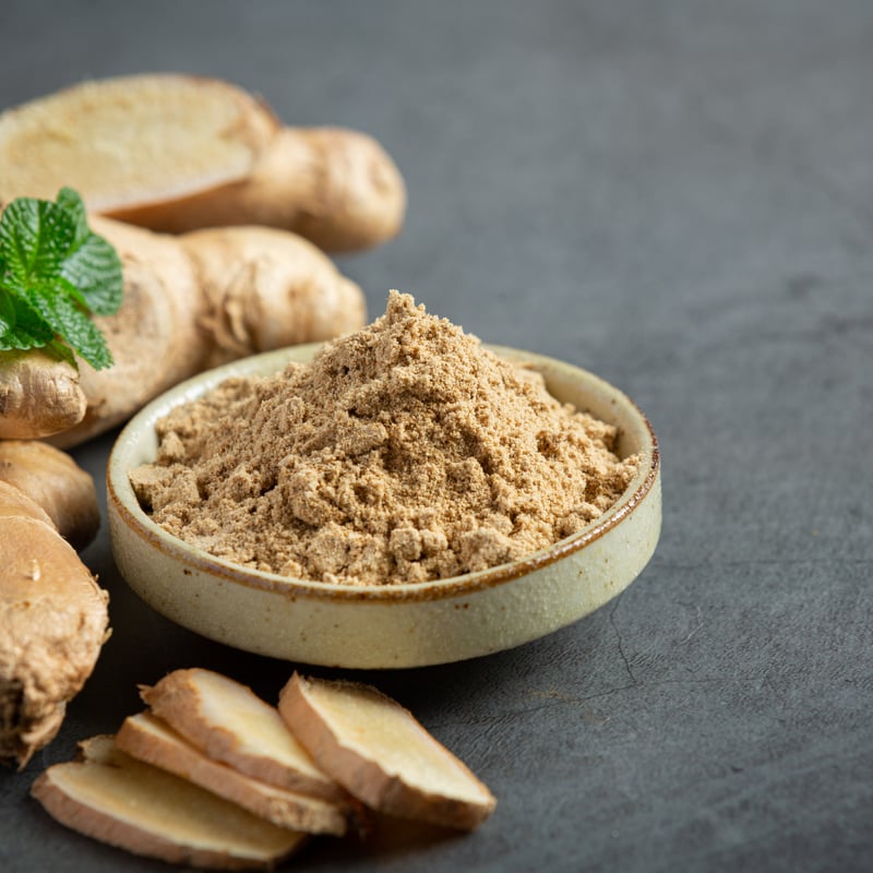 Fine powder from dried ginger with strong aroma and medicinal properties for digestion and immunity.
